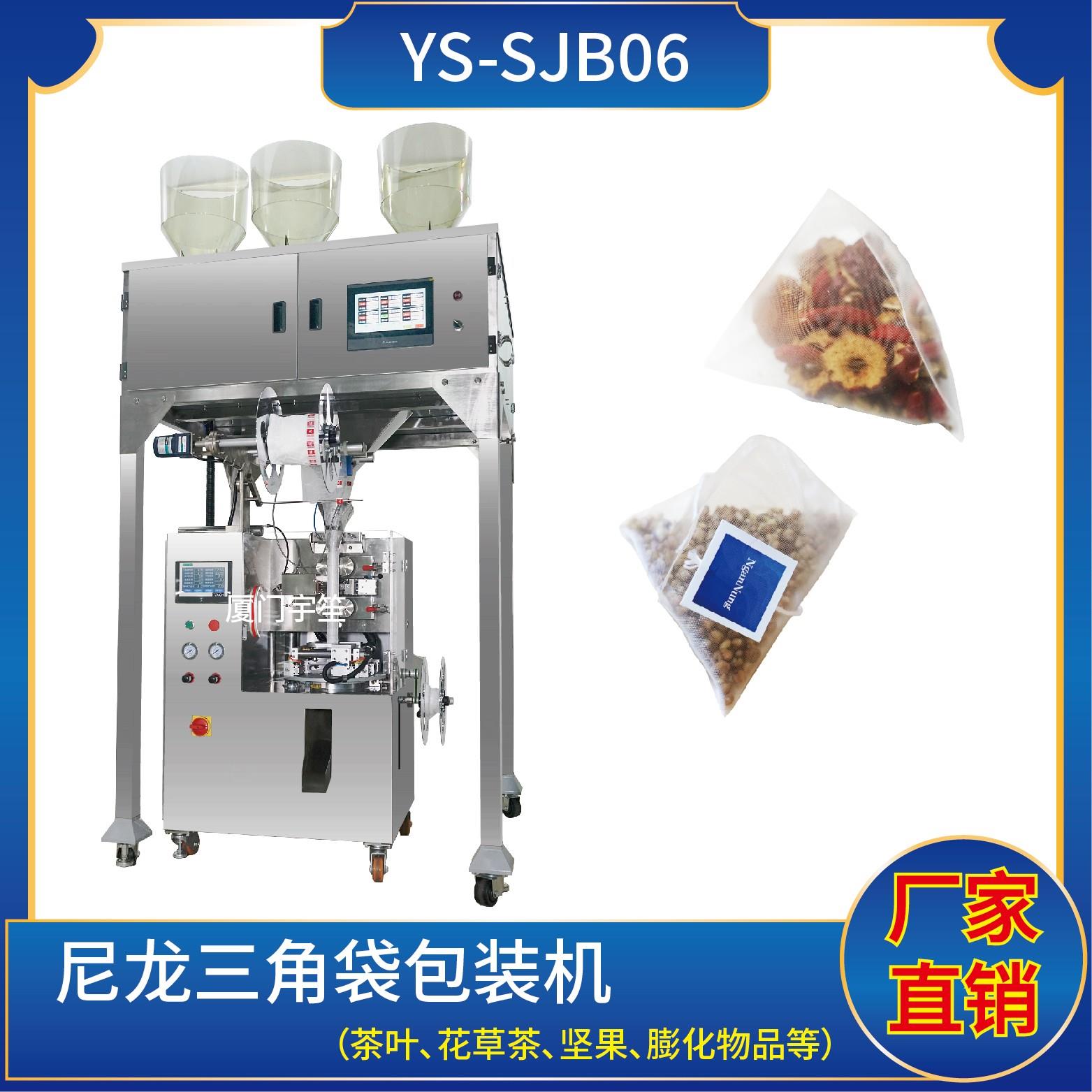 YS-SJB06 尼龍三角袋包裝機(電子秤系列)特 點 1、適用于綠茶、紅茶、花茶、咖啡、中國茶、健康茶、中藥茶、顆粒等。2、可用于平面袋包裝、三角立體包裝等形式包裝袋。3、整機可自動完成上料、計量、制袋、封口、切斷、計數(shù)、成品輸送等功能。 4、選用進口超聲波封口,電子稱計量下料方式,封口牢固,下料準確。5、包裝材料…
