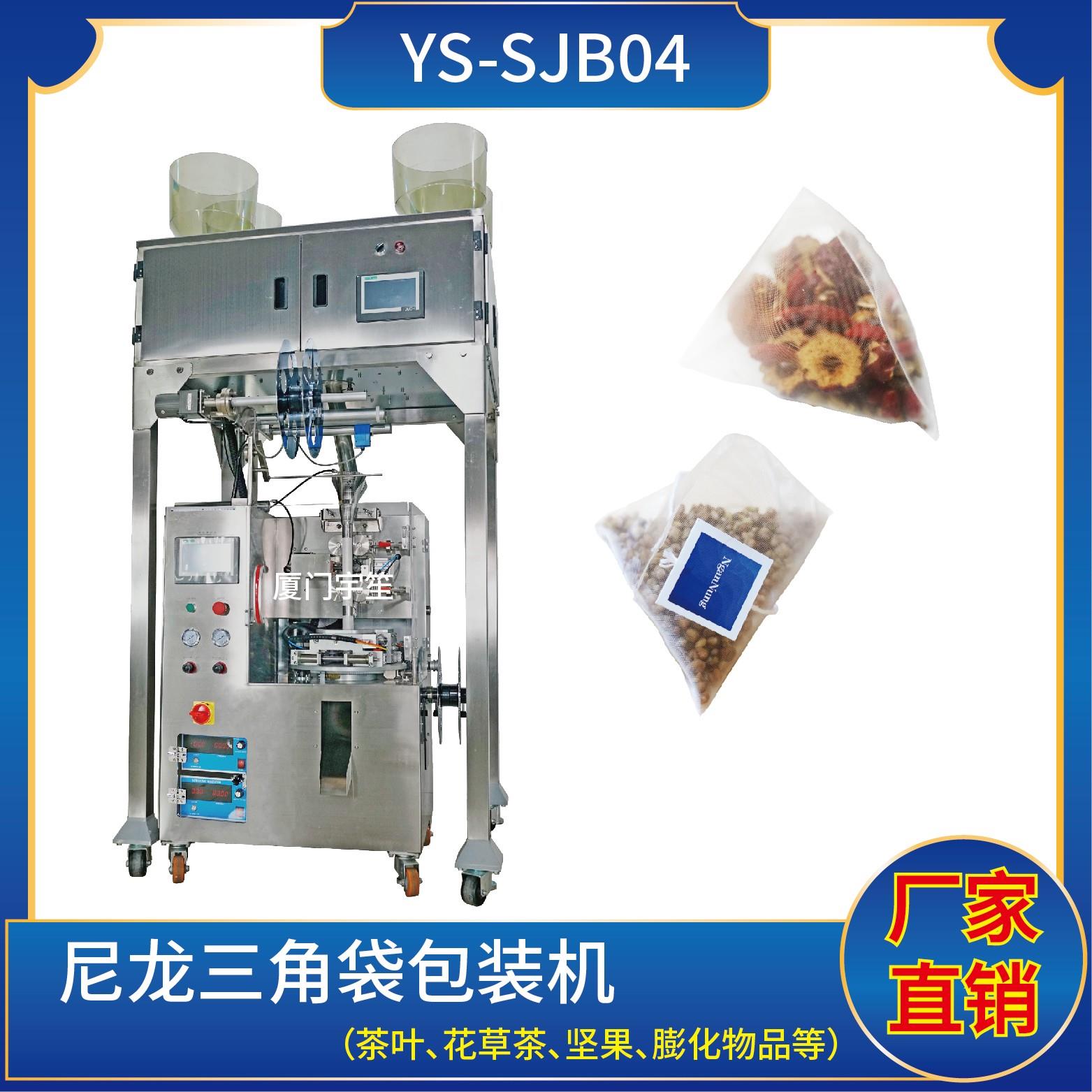 YS-SJB04 尼龍三角袋包裝機(電子秤系列)特 點 1、適用于綠茶、紅茶、花茶、咖啡、中國茶、健康茶、中藥茶、顆粒等。2、可用于平面袋包裝、三角立體包裝等形式包裝袋。3、整機可自動完成上料、計量、制袋、封口、切斷、計數(shù)、成品輸送等功能。 4、選用進口超聲波封口,電子稱計量下料方式,封口牢固,下料準確。5、包裝材…