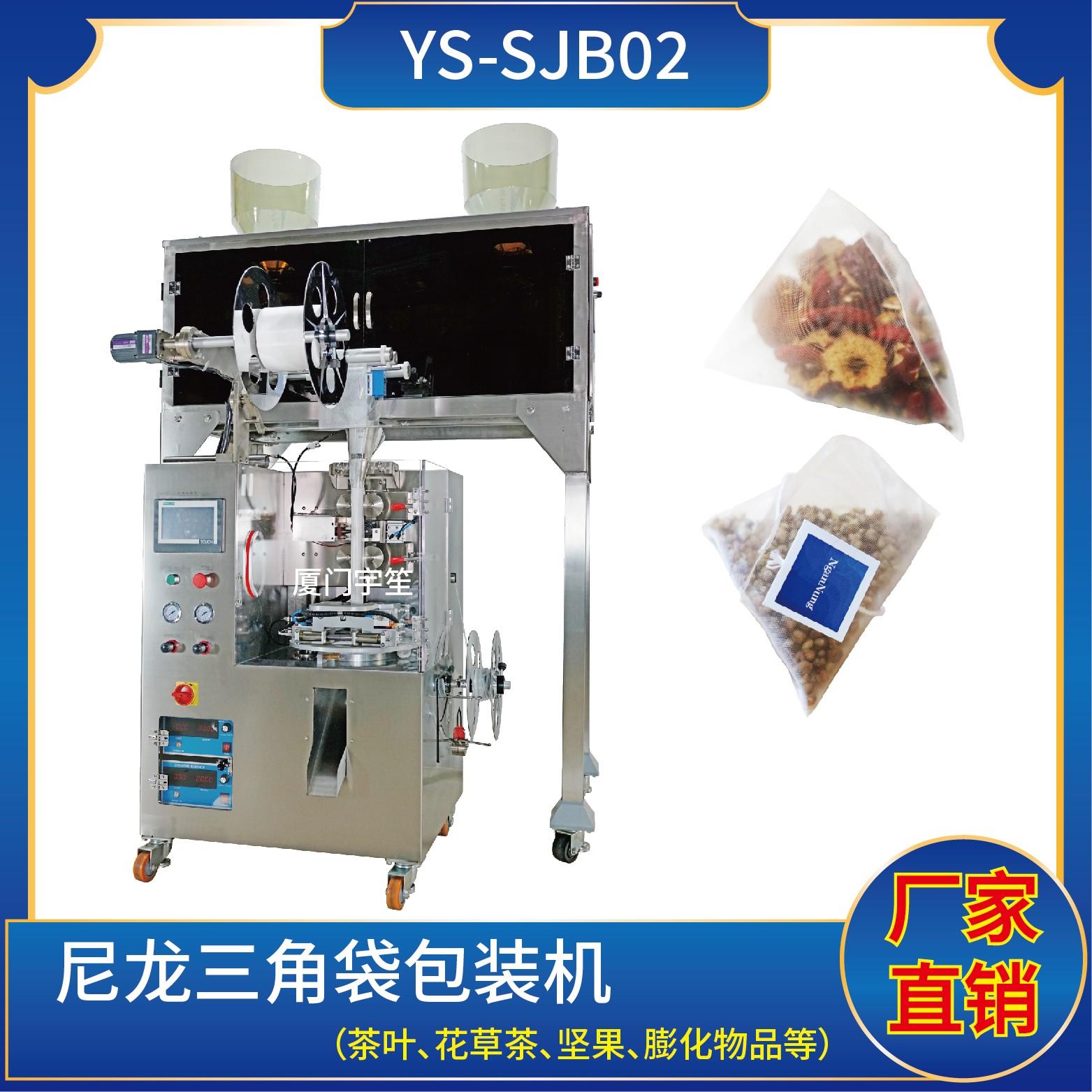 YS-SJB-NW 三角包內(nèi)外袋一體機(電子秤系列)特 點 1、適用于綠茶、紅茶、花茶、咖啡、中國茶、健康茶、中藥茶、顆粒等。2、可用于平面袋包裝、三角立體包裝等形式包裝袋。3、整機可自動完成上料、計量、制袋、封口、切斷、計數(shù)、成品輸送等功能。 4、選用進口超聲波封口,電子稱計量下料方式,封口牢固,下料準確。5、包裝…
