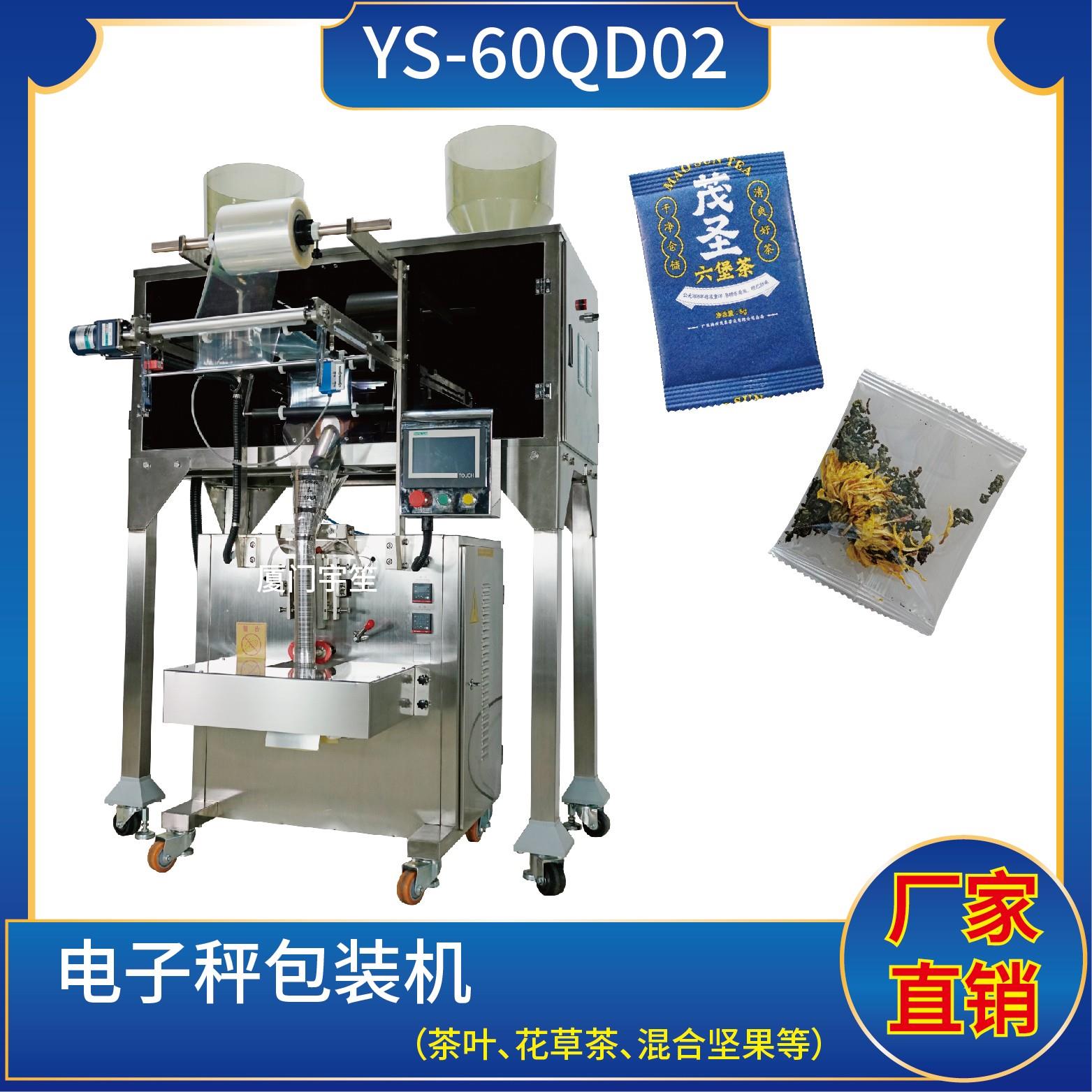 YS-60QD新一代 茶葉包裝機(電子稱)一、特點:1、適用于食品、醫(yī)藥、化工等產(chǎn)品中的顆粒狀、短條狀、片狀固形物如:膨化食品、蝦條、花生、爆米花、麥片、瓜子、白糖等多種物料。2、可自動完成制袋、計量、下料、封合、分切、計數(shù)、且可根據(jù)客戶要求配置打印批號等功能。3、觸摸屏操作,PLC控制,驅(qū)動步進電機控制袋長,性能…